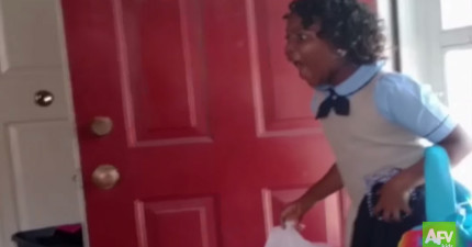 這位女孩放學回家一打開門,所看到的景象讓她開心到坐倒在地哭崩。