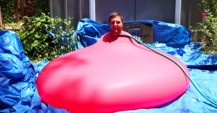 這名男子爬進一顆不停灌水的巨大水球,直到3:02…炸開的慢動作太完美啦!