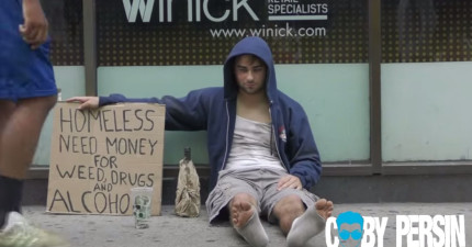 他扮成「菸酒成癮的遊民」還有「無家的單親爸爸」看路人比較願意幫助誰,結果讓人很意外…