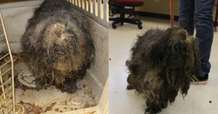 收容所在門口發現這隻被棄養的的可憐毛球,直到他們替她剃毛後才蹦出一隻超可愛寶貝!