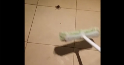 這個男人拿掃把打爆超大的狼蛛,沒想到夢魘是在打完後才蔓延開來…