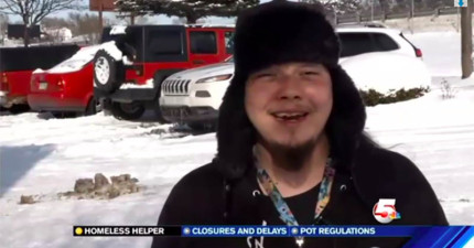 這位遊民在冰天雪地中熱心幫忙陌生人推車,最後讓他得到改變一生的好報。