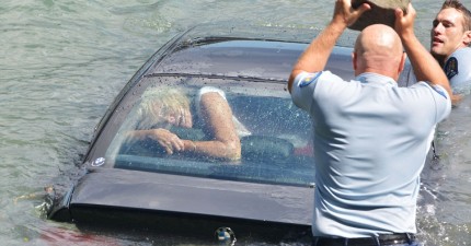 女子開車落入水中,在高速下沉溺水喪命之際,這2位英勇的警察跳入水中…