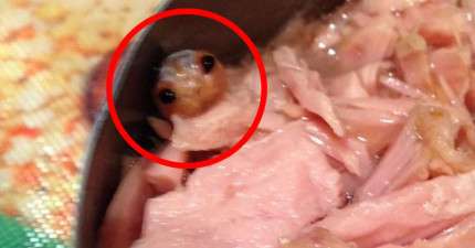 一位媽媽在鮪魚罐頭中發現了這個極為不明的生物,網友甚至推測是外星生物!