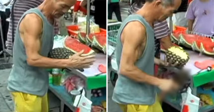 高手在民間!阿伯「神刀手削鳳梨」外國人看傻 速度真工夫太療癒