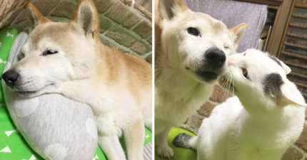 就是要和你在一起!老柴犬罹患「失智症」貓咪死守身邊,「抱著睡覺的模樣」暖哭所有人!