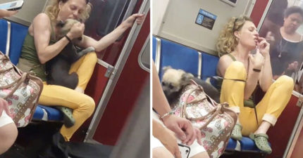 女子在地鐵上用力啃咬狗狗,發出的慘叫讓車長緊急停駛列車。(影片)