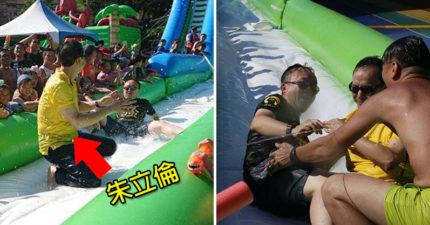 影/最有種局長!滑水道上「撞飛朱立倫」臉蛋貼地 發文默哀:我最後一天上班