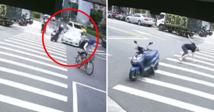 影/騎士被撞飛「3秒完美著地」 超殺姿勢讓等紅燈騎士傻眼:他索爾啊?