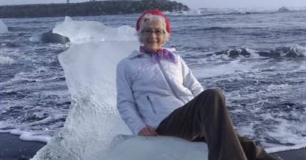 老爸帶著奶奶在「冰之王位上」拍照 下張照片奶奶居然直接漂走了