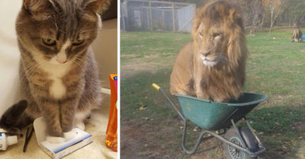 30張證明給無知的人類看「死了都要塞」的爆笑喵星人!#5 超大型的貓類都同一副德性…