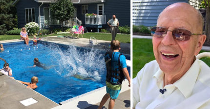 94歲法官在太太過世後太寂寞,蓋了一座「超暖游泳池」一群小孩每天來陪他!