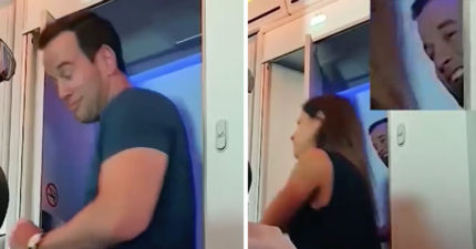 男女飛機廁所偷偷啪啪啪,坐廁所旁男子把「勝利」都拍下來了!
