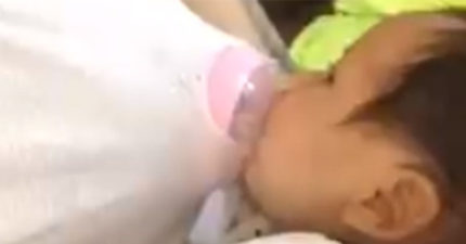 媽媽去上班,天才老爸想盡辦法讓女兒「自然喝奶」讓網友忍不住噴笑!
