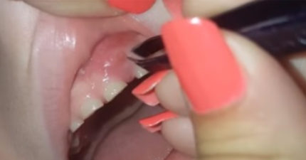 影片中媽媽慢慢從孩子牙床中拔出東西,拔出「27片指甲」讓人想吐!