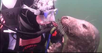 潛水員不懂這兩隻超萌海狗想要幹嘛,直到他把手伸出去被「往前拉」… (影片)