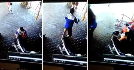 機車行老闆忽然「第六感」感覺不對勁,神轉身「抱住小孩後空翻」救2條人命!