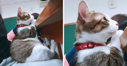 喵星人比其他學生都還「專心聽課」的萌樣,讓老師「不知道該哭還該笑…」