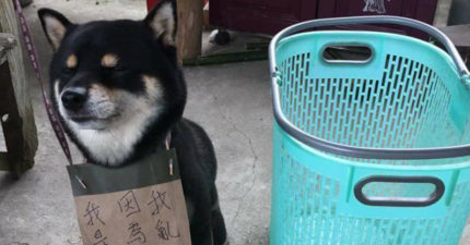 在衣服上亂尿尿,超萌壞壞狗被「罰坐」,網友表示:「看眼神再犯機率極高!」