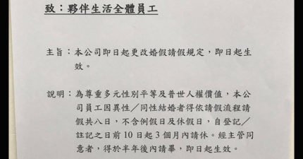 「政府沒做,我們先做」前衛公司發佈公告批准「同性婚假8天」!