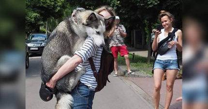 超萌哈士奇散步到一半跳到主人身上「求救」,「敵人」讓人笑傻眼…