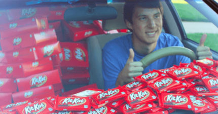 男大生抱怨車上巧克力被偷 巧克力公司聽到後「他車子就被6500條巧克力塞滿了」!