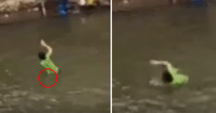 女子在河邊洗衣服時「明顯被水鬼」用力拉回水中,影片中動作一點都不假!