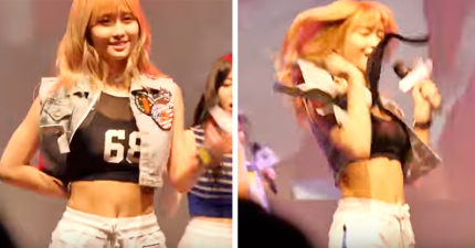 TWICE成員Momo在表演時背心彈開嚴重走光,子瑜台上超鎮定幫忙太讚了!