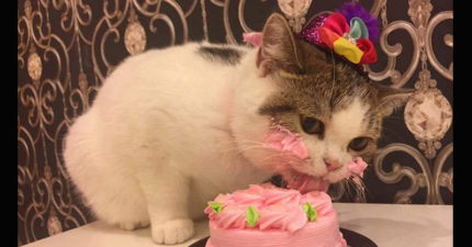 這隻小貓咪吃可口蛋糕時還可看出有”貓性”,當一吃完露出的「死奴才」表情才讓人發現大條了!