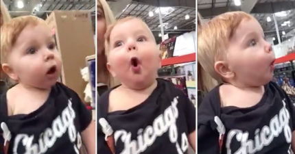 1歲小寶寶第一次看到聖誕節商品,「超級浮誇的表情」讓人受不了想買下整間店送他!