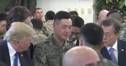 世紀尷尬午餐!川普跟文在寅吃飯「中間卡士兵」,超哀怨表情超有戲讓網友都幫QQ…