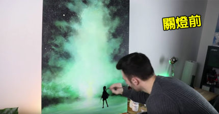藝術家畫出「哈利波特與護法鹿」 關燈後「魔法出現」讓畫活了起來!