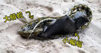 觀光客目睹「大蟒蛇V.S小蝙蝠」殘酷生死戰,結果讓人吃驚!