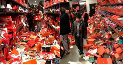 Nike鞋店經過一晚的黑色星期五瘋狂掃貨後,一片廢墟比地震還恐怖「奧客國外也很多」!