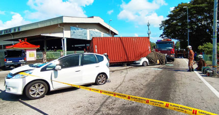 轉彎到一半 大貨車突「貨櫃翻落」重砸汽車!21歲女駕駛慘被壓扁身亡