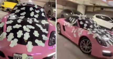 粉紅保時捷「被貼滿衛生棉」高雄車主氣喊:誰做的!警追查兇手傻眼了