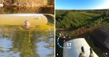 婦人開車墜河受困 天外突飛來「超級英雄」!驚險畫面曝