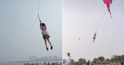 短裙妹遭巨型風箏「帶上天」!主人出面稱「很安全」:好幾個女孩試過