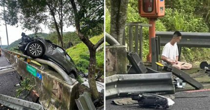 武俠高手?國道衝出護欄翻車 24歲駕駛路肩「打坐療傷」