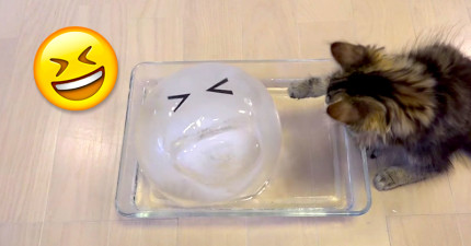 日本網友作出超大冰球放在地上,結果喵星人全都圍過來了…