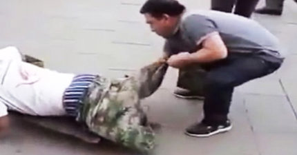 這個男生當街就動手脫殘障乞丐的褲子超沒品,但看到1:07你就會很慶幸他有這麼做!
