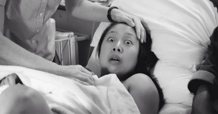 這位媽媽花了九牛二虎之力才生下寶寶,結果「一往下看」就被不可能的畫面嚇瘋了!