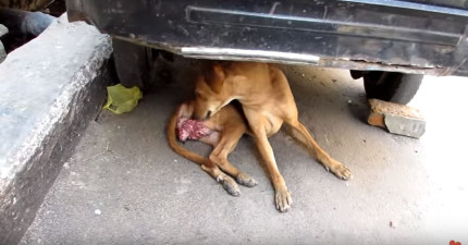 他們看到這隻狗狗一直在舔他的後半身,結果當走近一步看才發現到最令人傷痛的一幕。