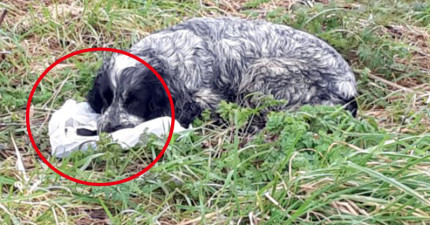 他路過發現這隻狗狗不斷舔舐塑膠袋以為她在吃東西,結果靠近一看才發現塑膠袋裡「最令人心碎的真相」!