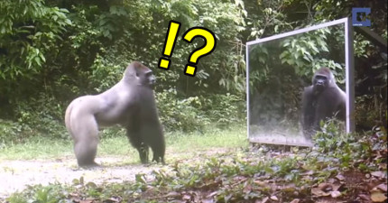 他們將一面大鏡子擺在野生動物前面想測試反應,網友驚呼:「1分04秒的動物居然把鏡子擦乾淨?!」