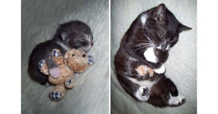 20隻小時候抱著大娃娃的超可愛寵物。過了幾年娃娃都變得好小喔!