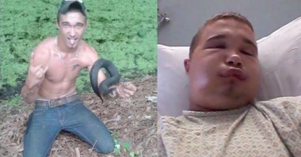 這名少年嘴唇被毒蛇咬傷而緊急送醫住院,但知道令人害羞真相後朋友們不禁狂嘲笑他。