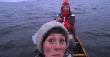 兩位在獨木舟上的女孩本來只是想自拍,卻意外錄下了天空中的超罕見奇景!