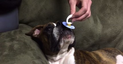 這隻狗狗睡午覺時也太喜歡吸奶嘴了…他最後的反應我有看錯嗎?