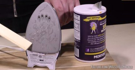 把鹽巴塗在熨斗上,然後再磨一磨…這太有效了!